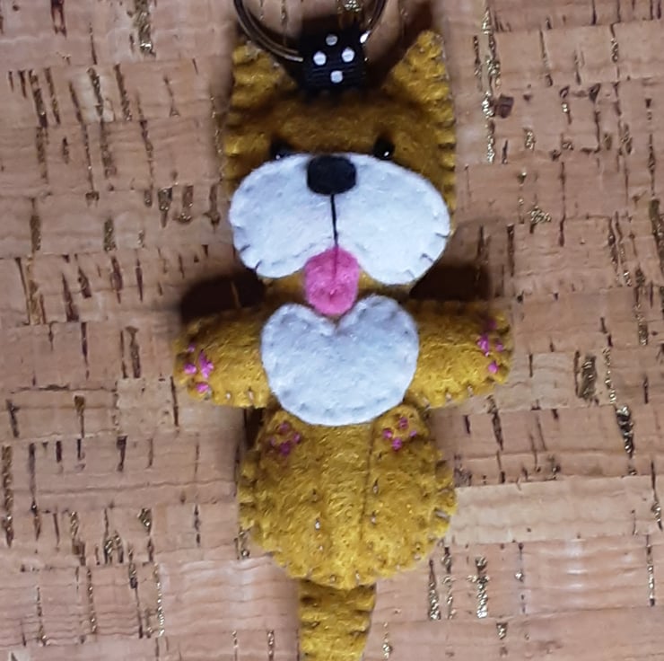 Dog on Back Light Brown & White Felt Keyring - Bag Charm
