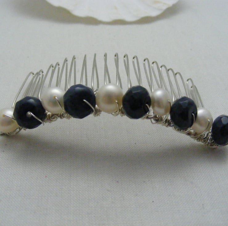 A lovely hair accessory for any occasion. Comb is handmade with, silver plated comb,