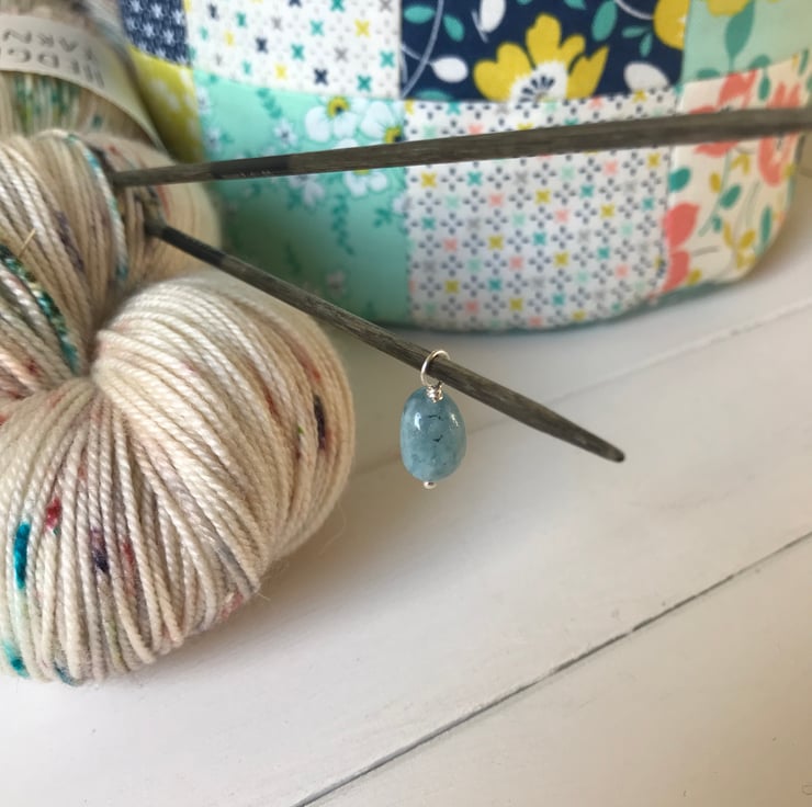 The bag comes with a lobster clasp inside to hang your scissors or stitch markers on, and also comes with the little stitch marker that you see in the picture.