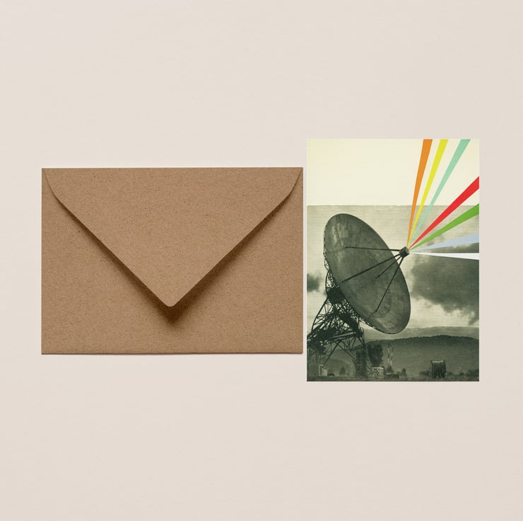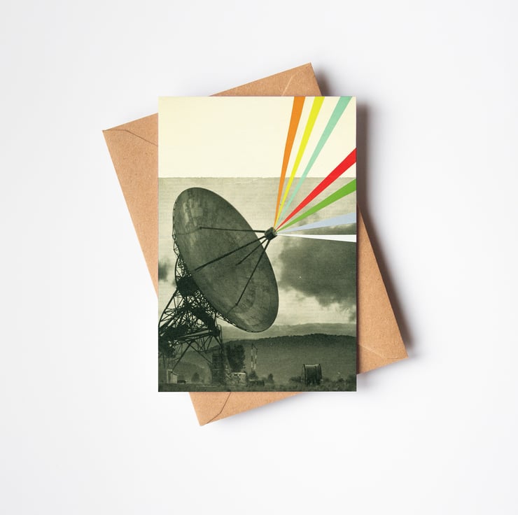 A retro satellite greetings card for sci-fi lovers. Aliens might just be out there!