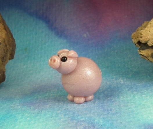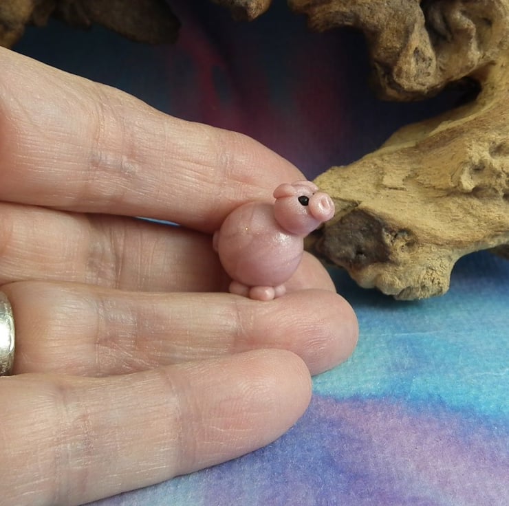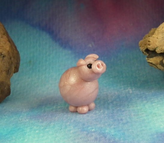 This is a 'one of a kind' creation having been entirely handmade without the use of moulds here at my studio on the Sussex Coast. Modelled with my own blend of polymers before sealing with lacquer, this piglet has sparkling black eyes. The piglet is just over three quarters of an inch from snout to curly tail.