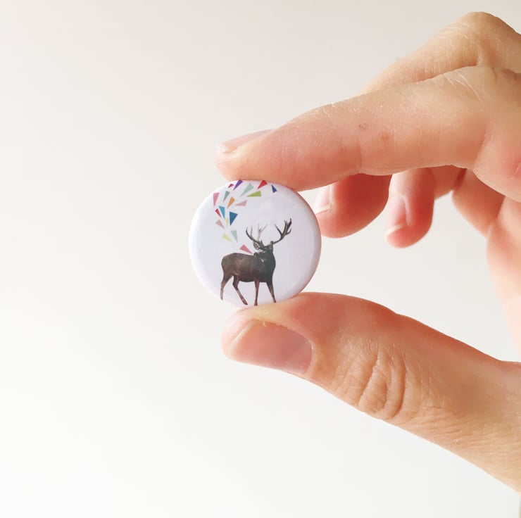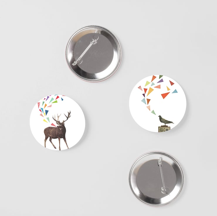 A set of two 25mm bird and stag badges. Ideal for wildlife lovers.