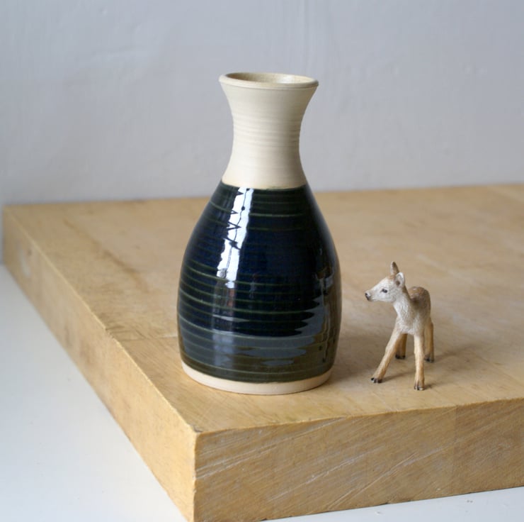 This ceramic bottle was hand thrown with white Devonshire stoneware clay. It's ideal for bringing small bunches of wild garden flowers such as snowdrops, bluebells and cow parsley in to brighten up a little shelf or corner of your home.