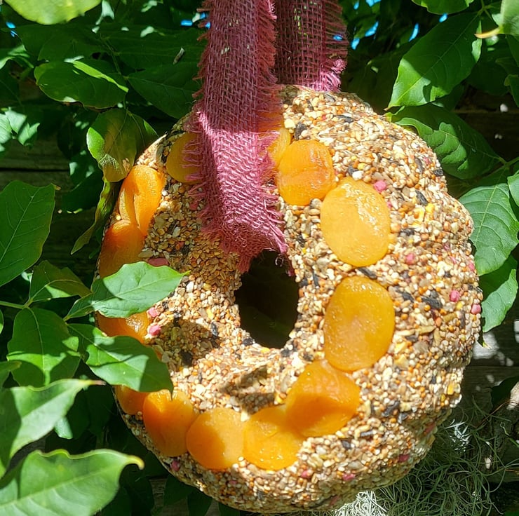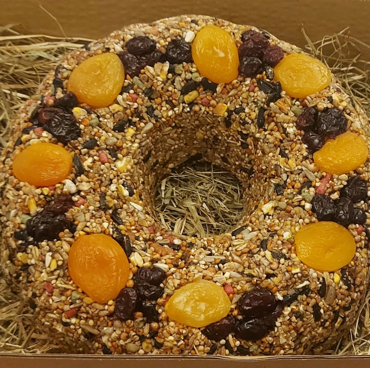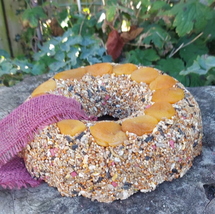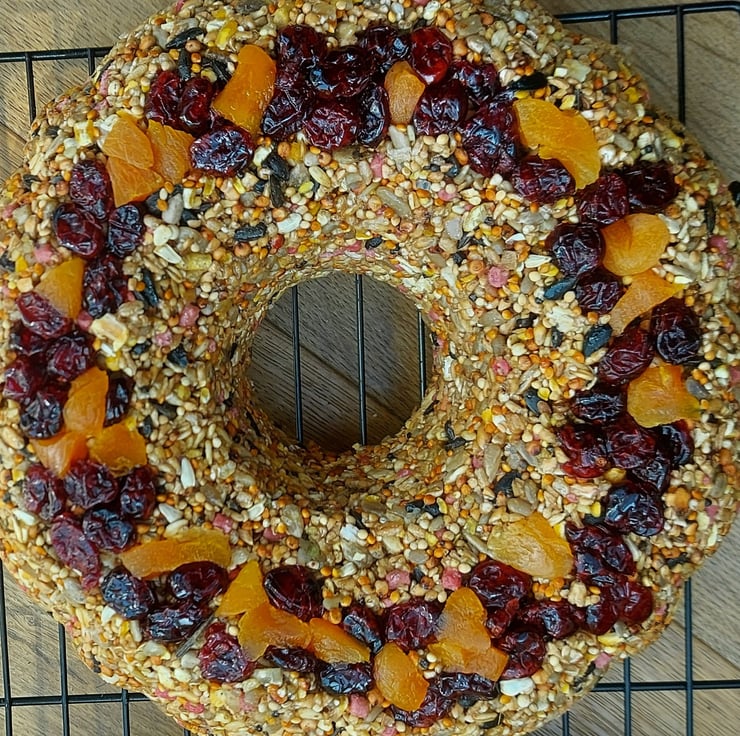 Supplied with Hessian ribbon for hanging in a sheltered spot or Wreaths can be laid flat in the garden for the birds to enjoy.