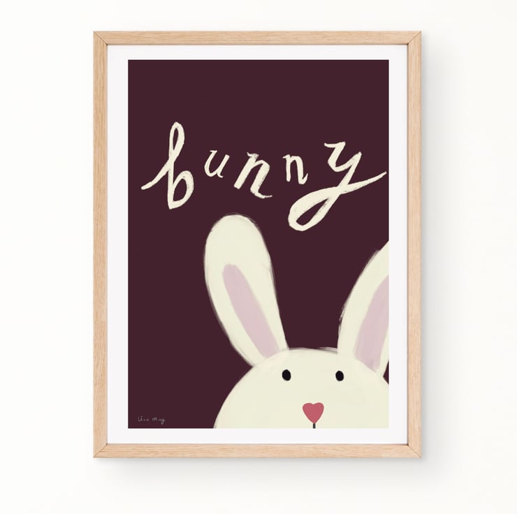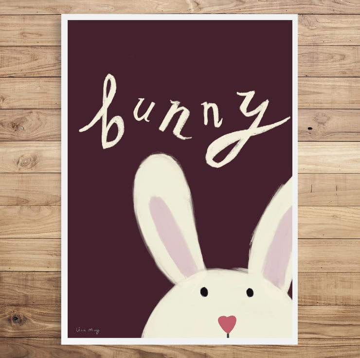 This cute sleepy bunny illustration by Lisa May Illustration has been drawn digitally on an iPad using Procreate (and lots of Yorkshire Tea) and is custom printed as a quality open edition art print. This artwork is professionally printed on high quality poster paper and carefully packaged. The cute fluffy bunny is very sleepy and is a perfect print for a nursery or children's bedroom. This dark red art print will create a cute and cosy vibe for your home! This item is A4 but if you would like another size please contact me and I will arrange for you (up to A2 available).