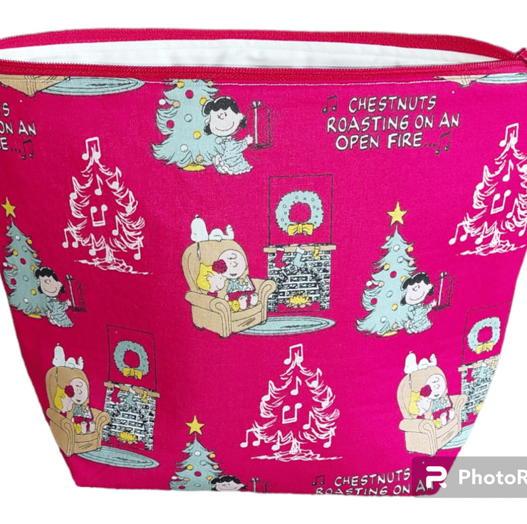 The fabric is of charlie brown christmas theme with a cream fabric for the lining.