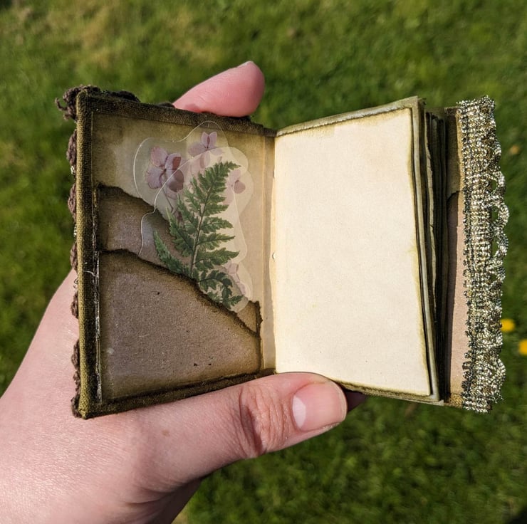 The pages inside which are an assortment of tea dyed unlined, lined and tracing papers can be written on and embellished.