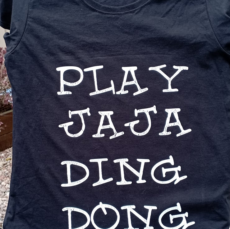 Play jaja ding dong graphic t shirt for ladies and girls.
