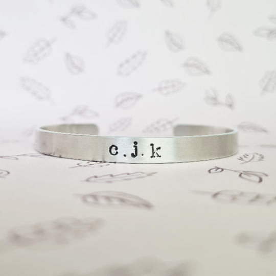 Each cuff bracelet will be hand stamped to order. This process means that the letters may not be perfectly straight and the indent may be slightly deeper for some letters. This makes each item unique! Please note that I only have available lower case letters as shown in the pictures.