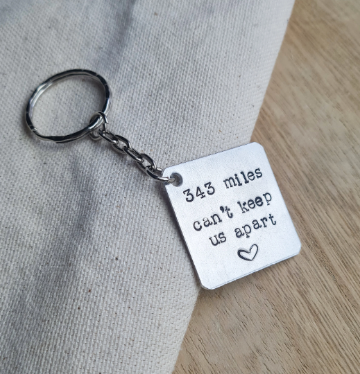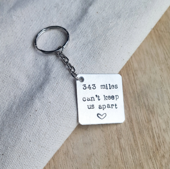 This Custom Miles Apart Keychain is such a lovely gift to give your other half or best friend that lives far away!