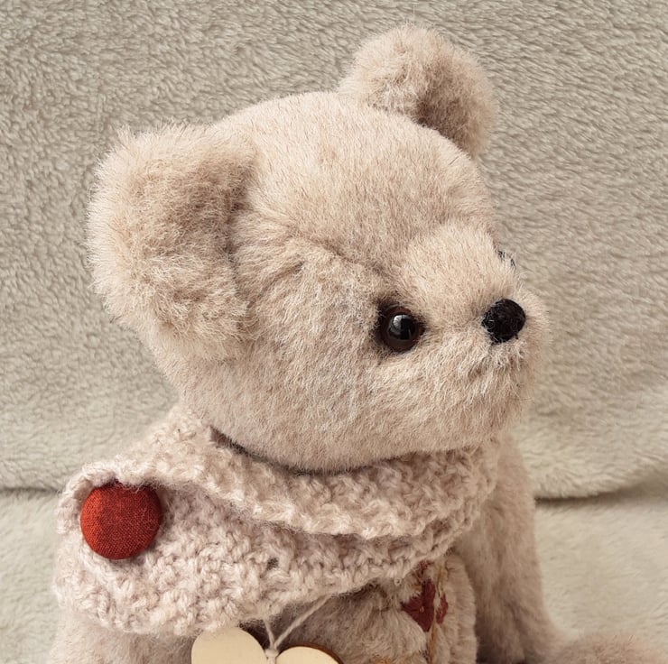 Unique hand embroidered alpaca and mohair artist bear. A one of a kind collectable, heirloom teddy bear designed by Bearlescent