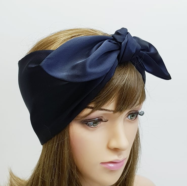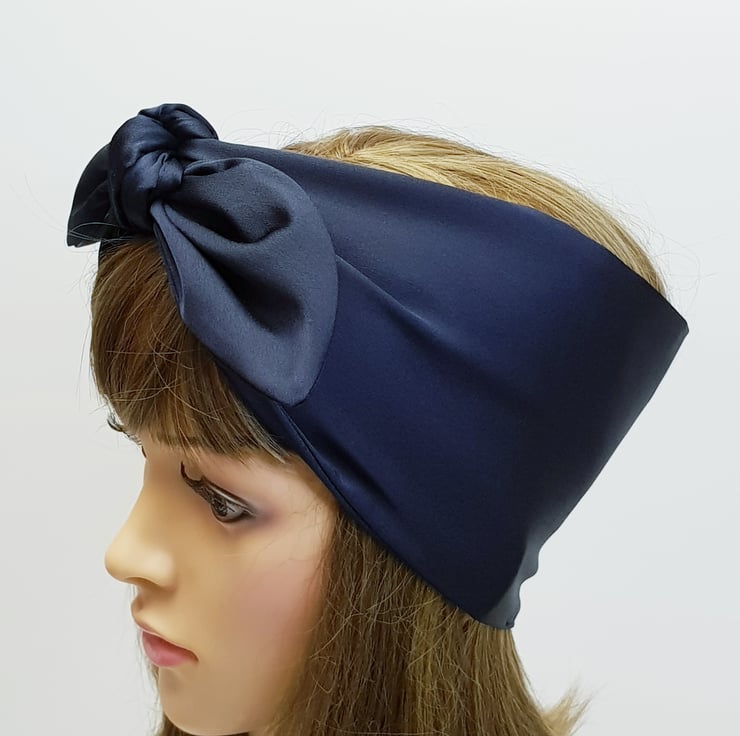 Self tie navy blue head scarf for women, natural curly hair scarf, wide hair bandanna.