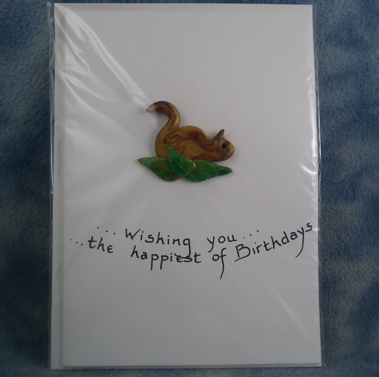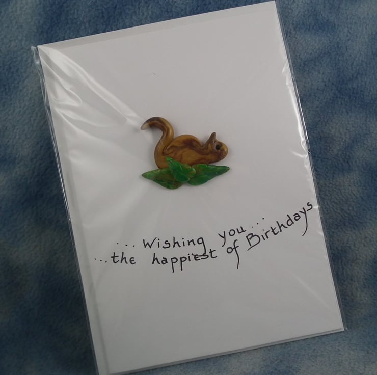 Spring Sale ... Handcrafted squirrel card by Ann Galvin A5 5"x7"