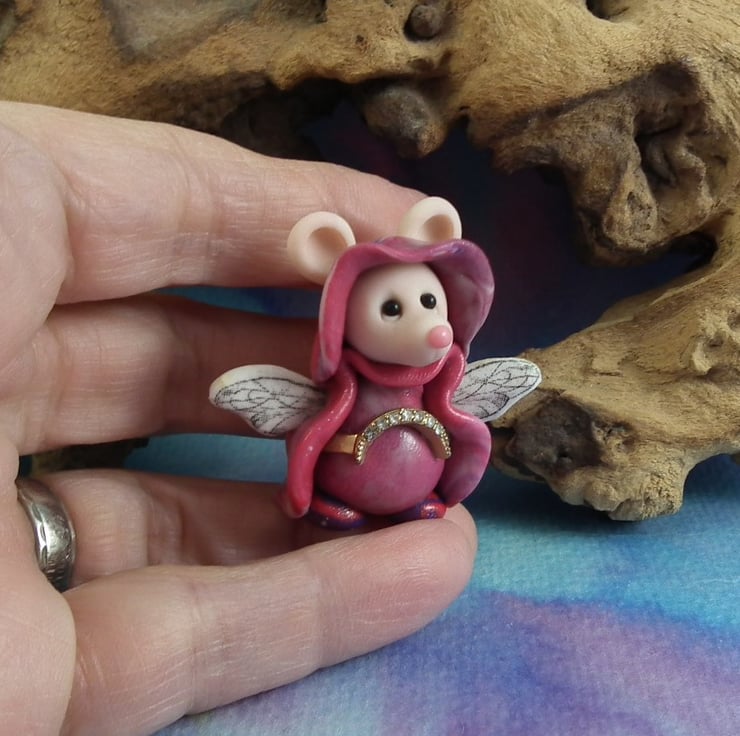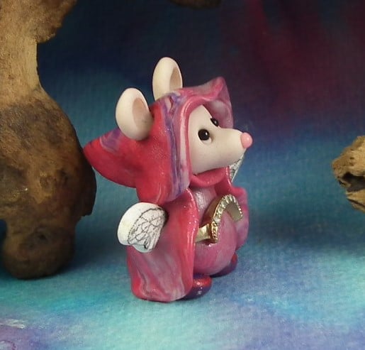 This is a 'one of a kind' creation having been entirely handmade without the use of moulds here at my studio on the Sussex Coast. Modelled with Prosculpt polymers, painted with heat set paints before sealing with lacquer, Rena has sparkling black onyx eyes. Rena the Angel Flurrier Mouse is just one and a half inches tall.