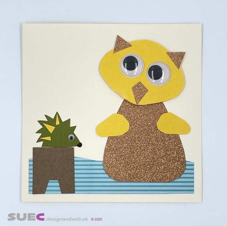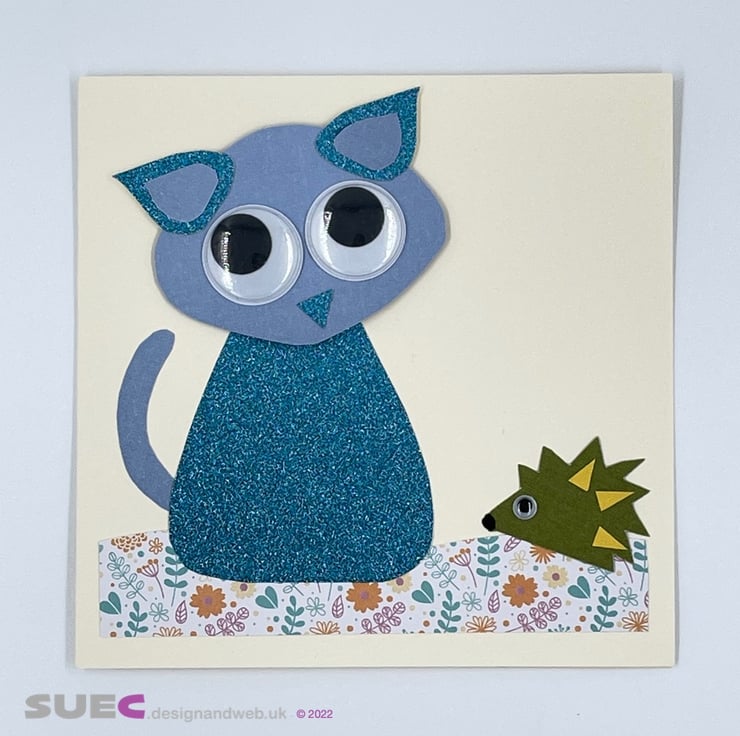 The kit contains all the cut out parts you will need to assemble the card including glitter card, googly eyes and sticky pads. You just need to add glue and imagination.