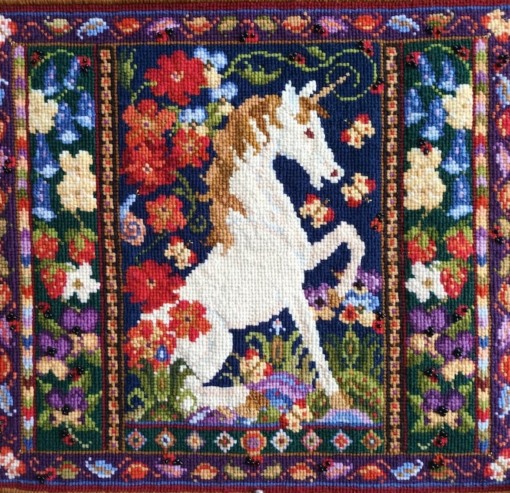 Unicorn Meadow Tapestry kit,  Medieval Style, Counted Cross-stitch, Needlepoint