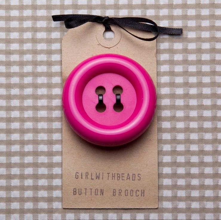 The big button brooch comes in a whole range of colours, looks great on a winter coat or a school bag and makes a great gift for all ages.