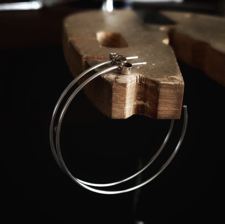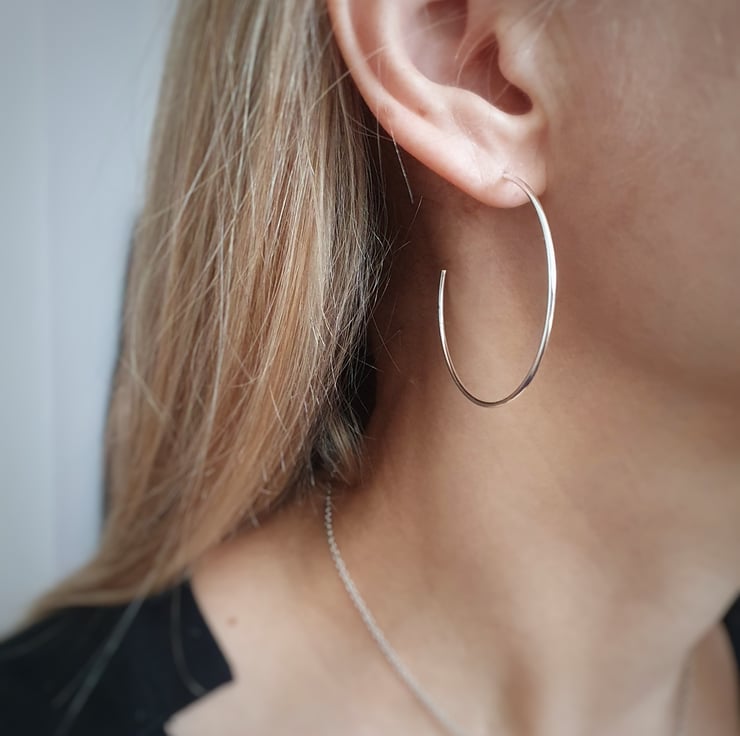The larger, slim hoops are 4.5cm (1 3/4 inches) in diameter and made from 1.3mm wire with ear posts 0.73mm and butterfly backs.