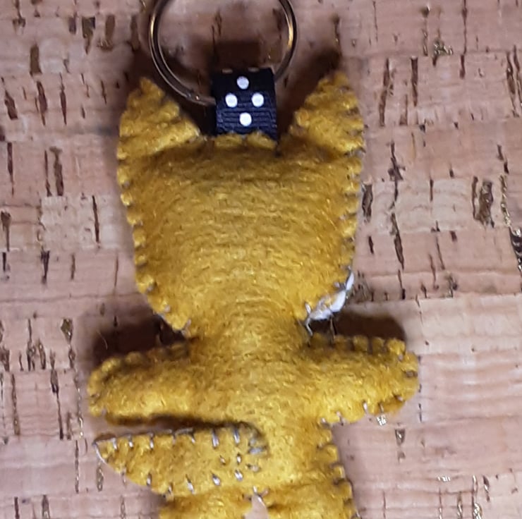 This is one of my keyrings. It is made from felt and has been hand cut and stitched.