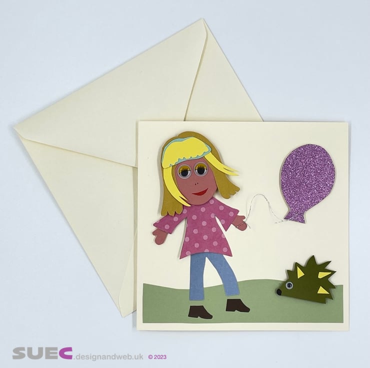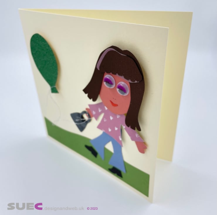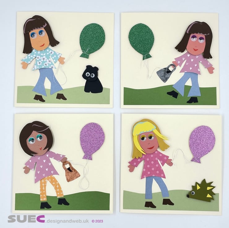 A kit to make 4 lovely 3D cards featuring a girl with a balloon. Ideal as birthday or invitation card. The cards are made using a variety of textured, patterned and glitter card. All the parts are cut out ready for you to assemble. The kit is designed as a parent / grandparent and child activity or for older children.