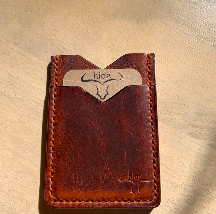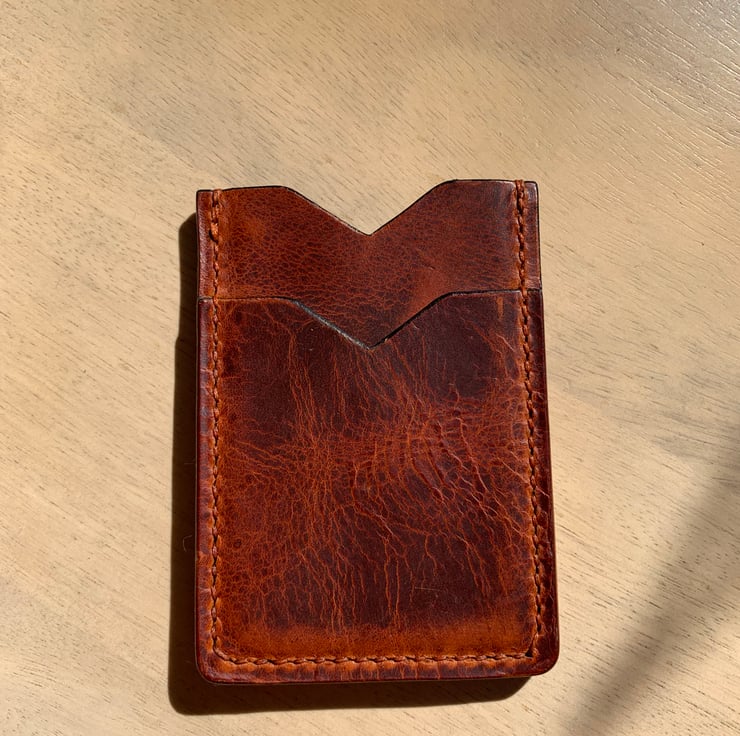 The Lenny card wallet is designed to keep 3 cards but with time could take up to 4 cards or 3 cards and some folded cash.