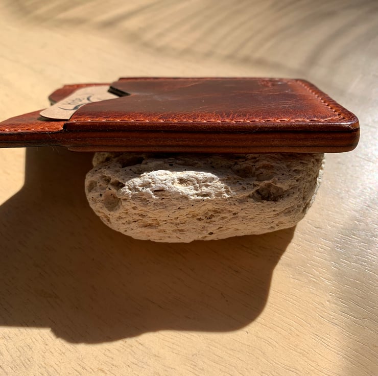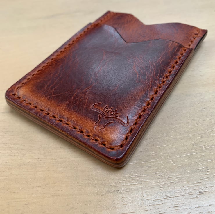 The Lenny card wallet is handcrafted using Italian Badalassi Carlo wax veg tanned leather in a rich Olmo colour. It has the most incredible pull up or lightening effect which gives the leather a distressed look when pulled or folded.