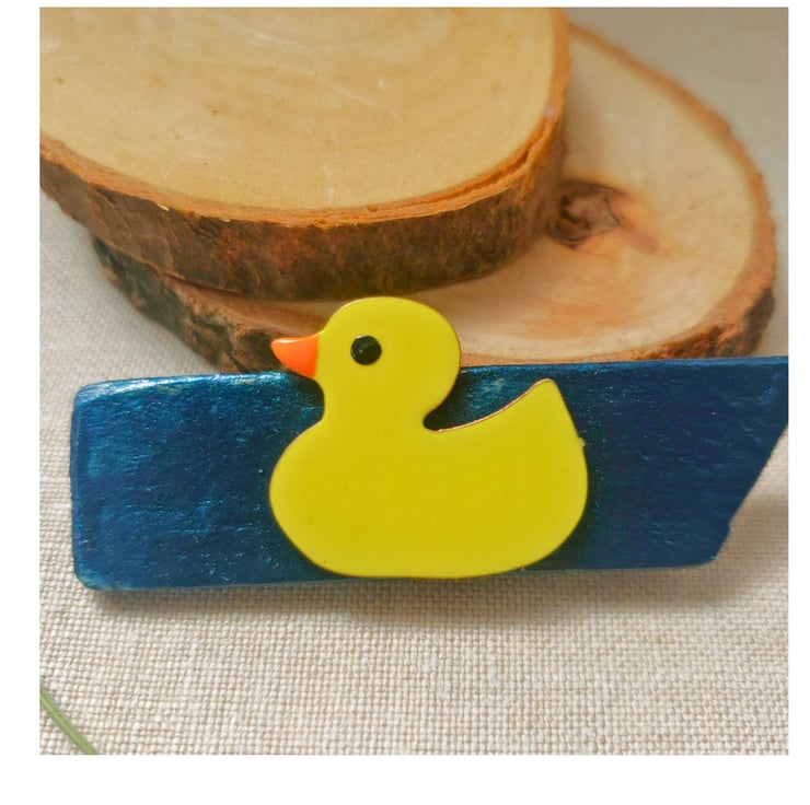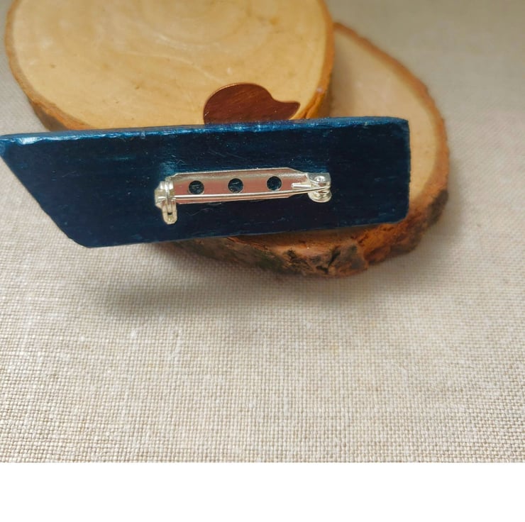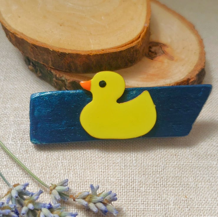If you like fun and unique jewellery then this is for you. Using a recycled copper blank I have enamelled it then added a face in acrylics. The duck has been attached to a repurposed wooden canvass peg. The entire brooch has been sealed with acrylic for durability.