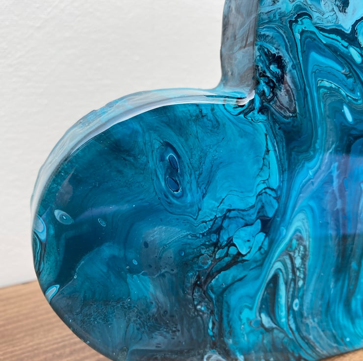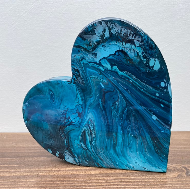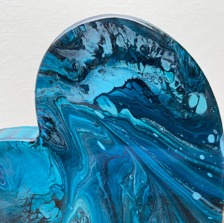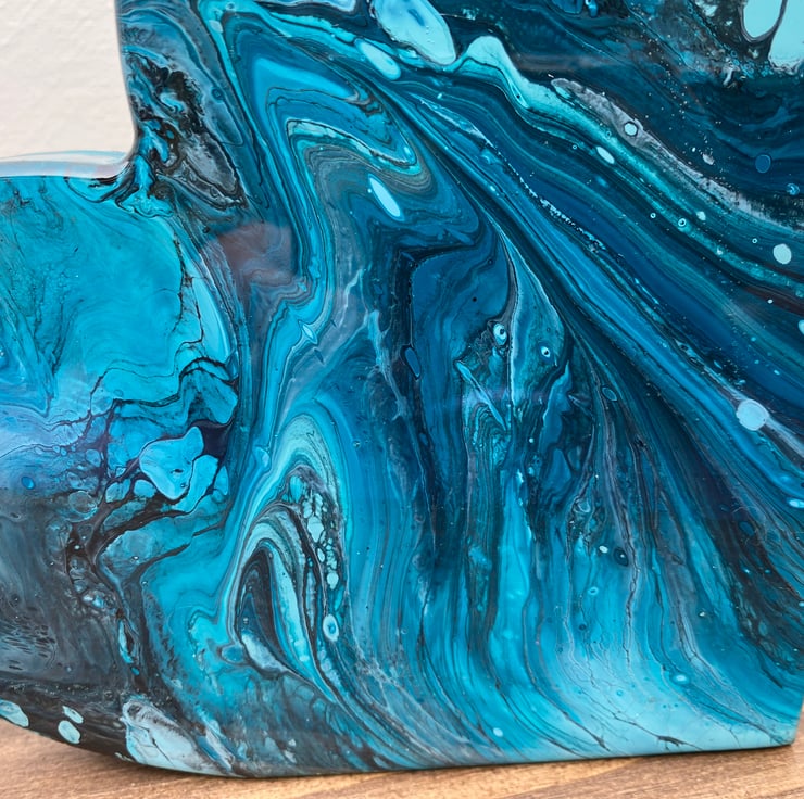Made from MDF wood with pouring acrylic paint technique, topped with two coats of resin.