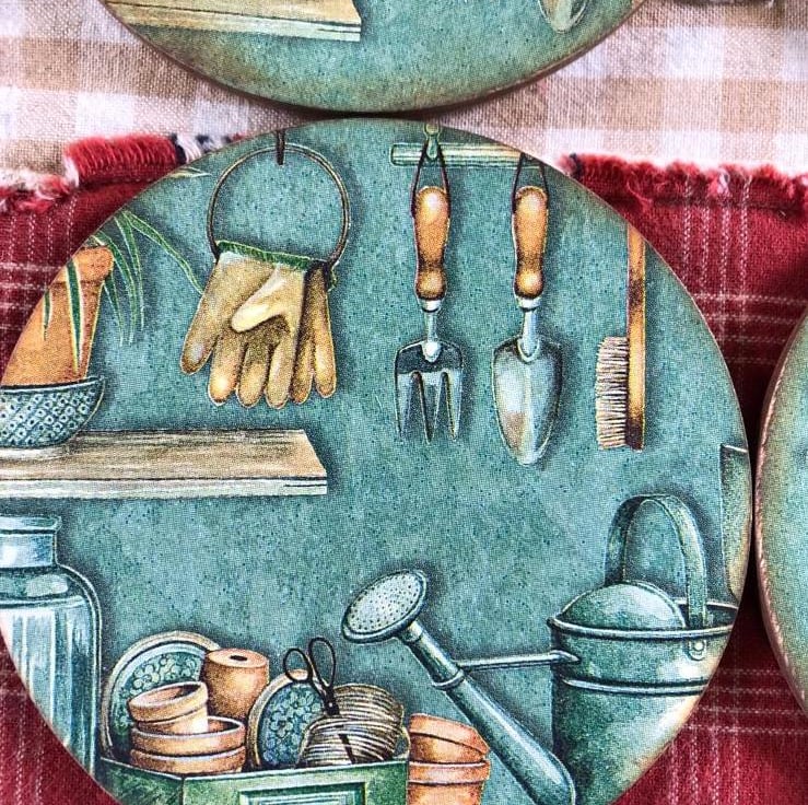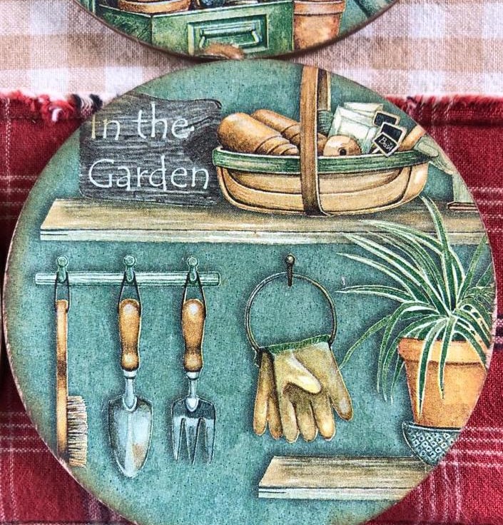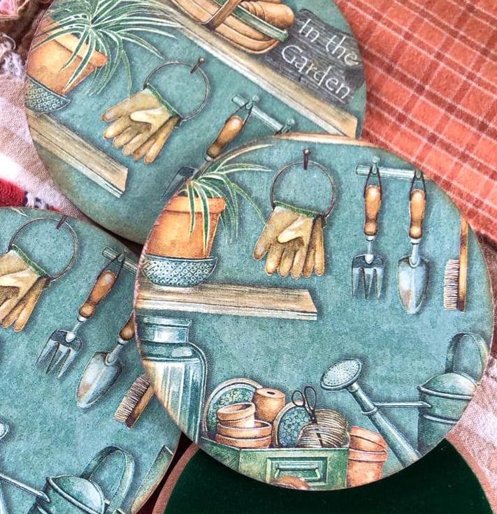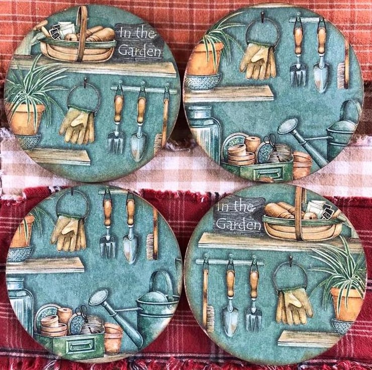 Handmade, Circular Decoupage Gardening Coaster Set of 2