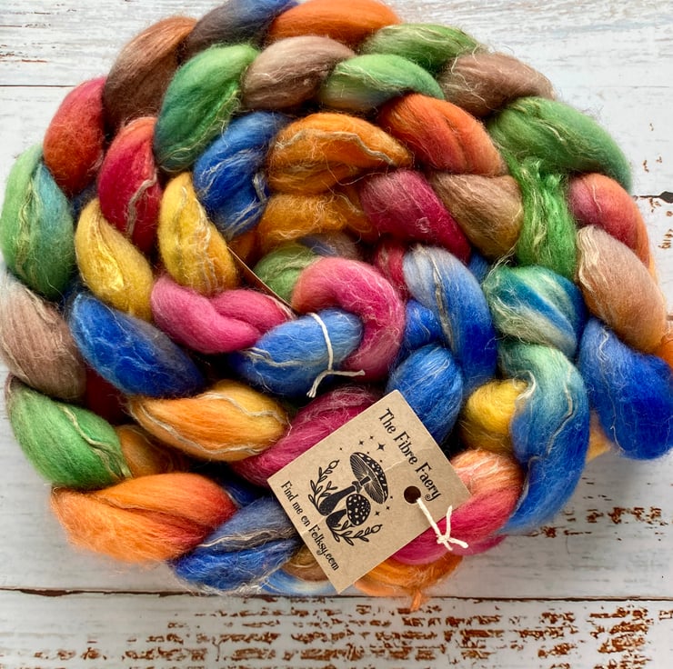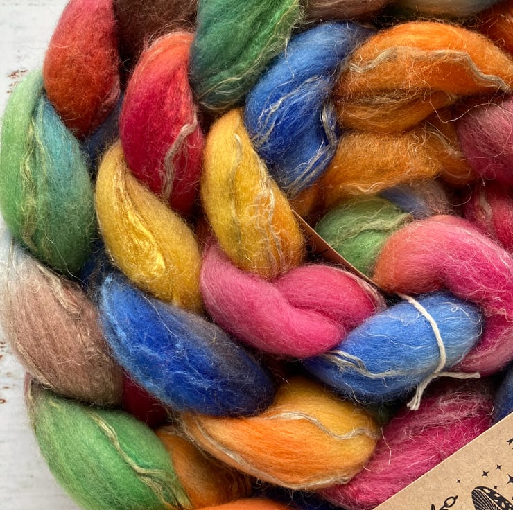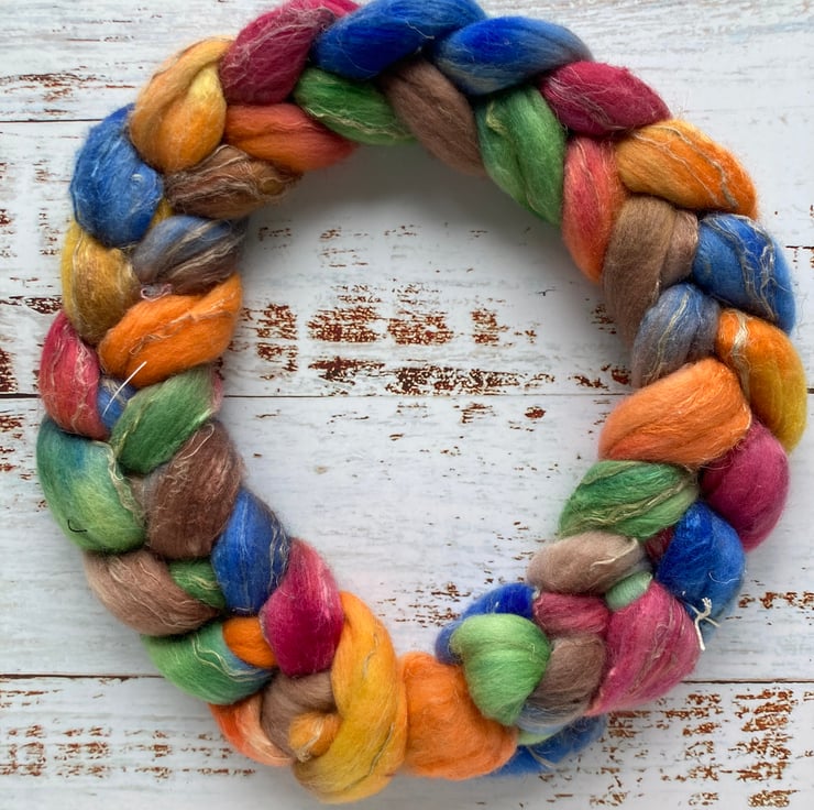 Merino Silk Linen Spinning fibre 100g Campfire
