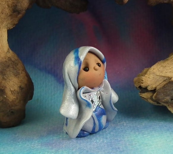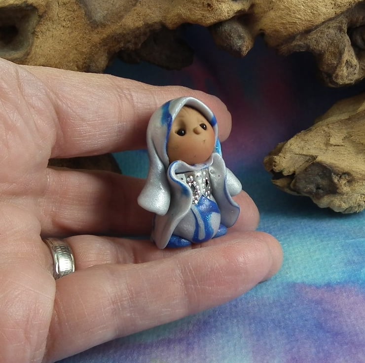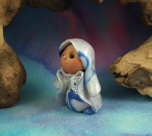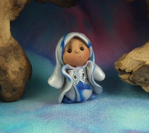 This is a 'one of a kind' creation having been entirely handmade without the use of moulds here at my studio on the Sussex Coast. Modelled with artist blend polymers, blushed before sealing with lacquer, Rhyll has sparkling black onyx eyes and variegated robes. Rhyll the Magical Gnome is just one and a half inches tall.