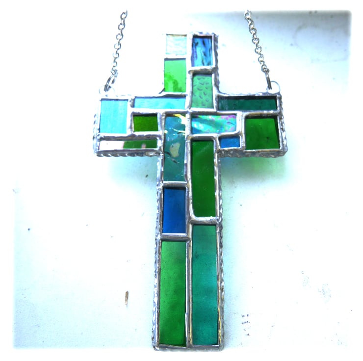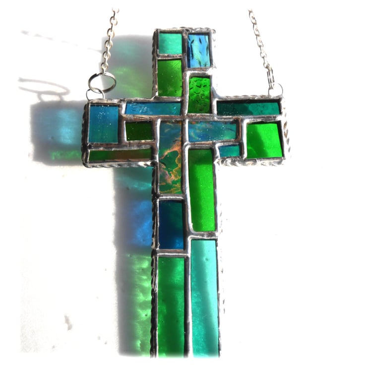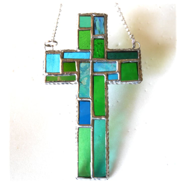 I've tried to incorporate the design of a modern stained glass church window into a classic cross shape.