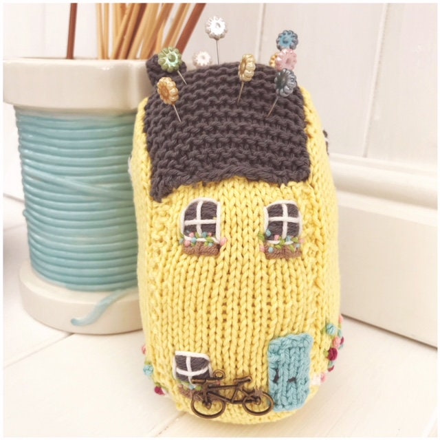 Digital PDF knitting pattern & photo tutorial to make these beautiful hand knitted houses designed for both home decor & to be used as fun pincushions.