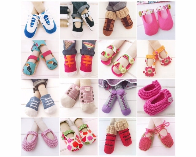 Learn to make these fun & fashionable footwear for your doll with this bumper pack of PDF patterns & full colour tutorials.
