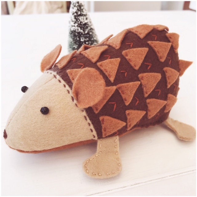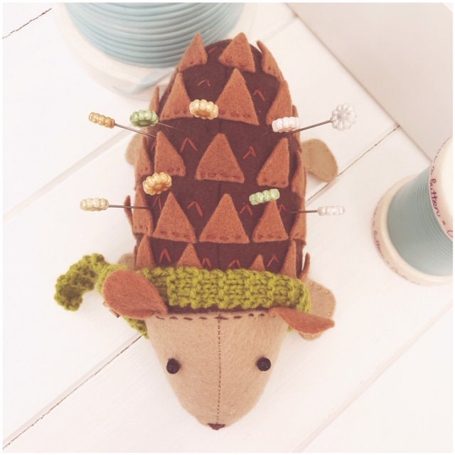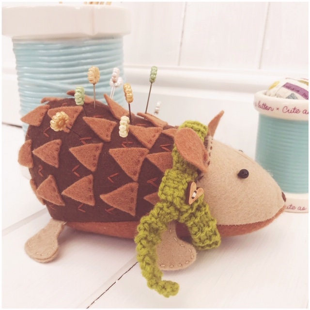Digital PDF sewing pattern & photo tutorial to make this adorable felt hedgehog doll/pincushion featuring the delightful 'Olive'. Pattern includes hedgehog & her knitted scarf.