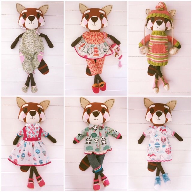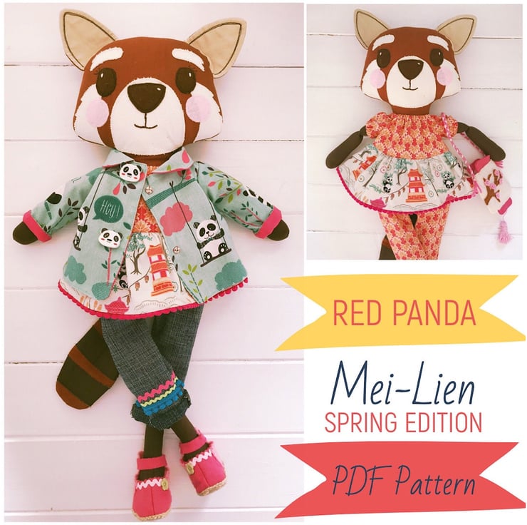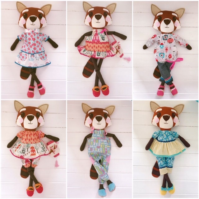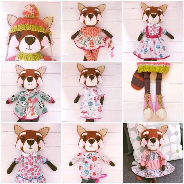 Digital PDF sewing pattern & photo tutorial to make this dress up red panda cloth doll featuring the beautiful 'Mei-Lien' with 25 items of stunning clothing & accessories for her to wear.