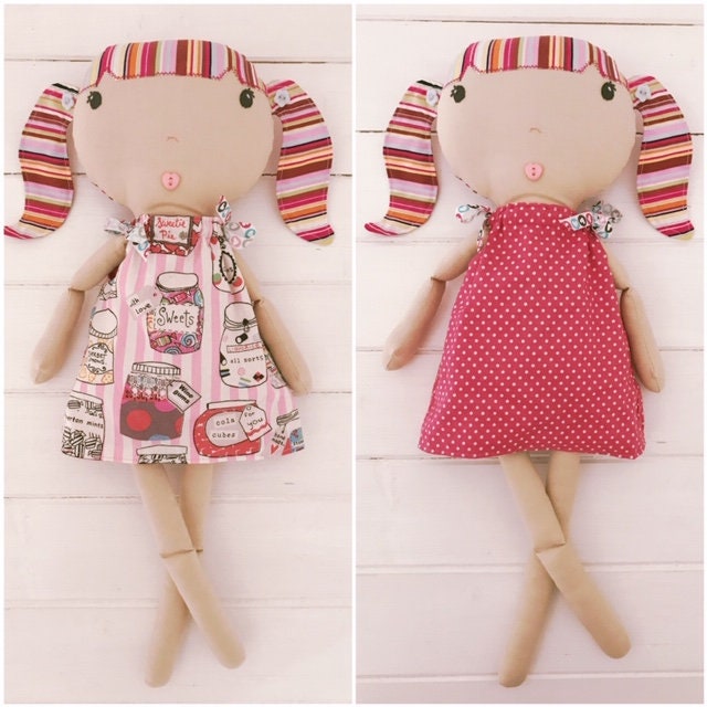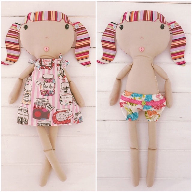 Digital PDF sewing pattern & photo tutorial to make this dress up girl cloth doll 'Scout' with reversible Summer dress & underwear. Pattern includes doll & 2 items of customisable clothing.