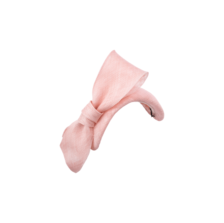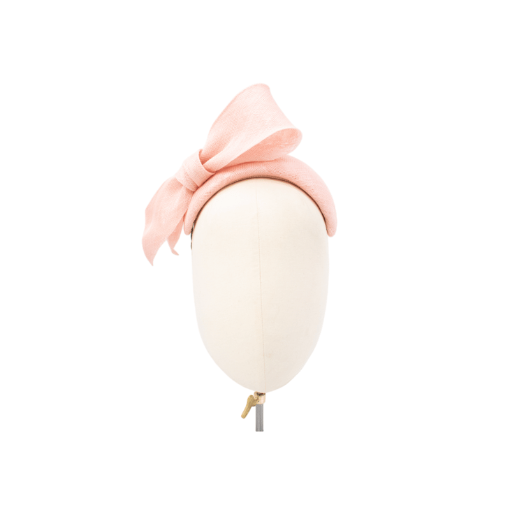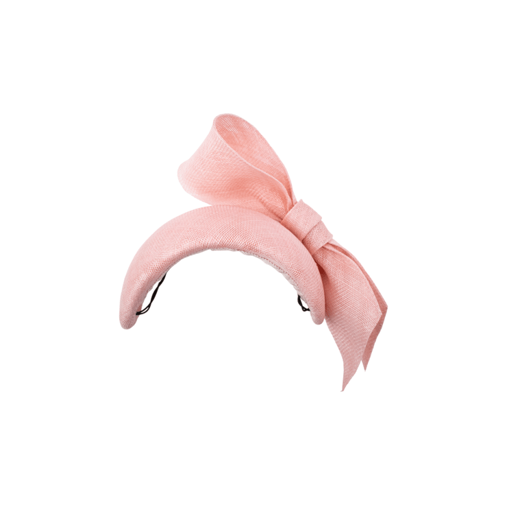GEMMA is a beautifully crafted bandeau style headpiece in a soft peach shade. Adorned with an elegant bow trim which would suit both a contemporary tailored style, or soften with floral dresses.