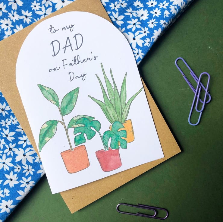 This simple card featuring watercolour illustrations of house plants reads To My DAD On Father's Day.
