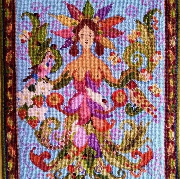 A Summer Goddess Tapestry cushion, wall hanging or picture kit to embroider using Victorian Cross Stitch. Follow the Colour and symbol chart in Anchor Tapestry wool on canvas.