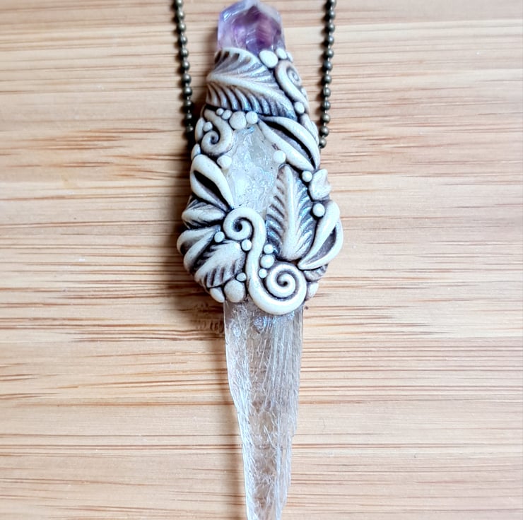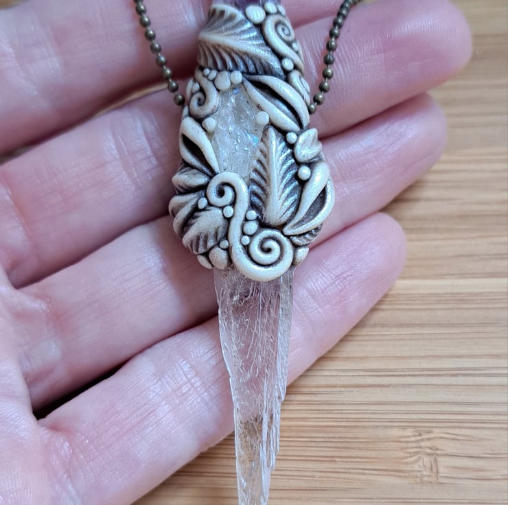 I post free within the UK only using Signed For service. Unless otherwise stated, pendants are finished with a fine ball chain. If you would prefer an adjustable waxed cotton neck cord, please do let me know. All pieces are supplied in an organza bag with a small packet of fragranced incense dhoop sticks to enjoy. Crystal properties are for guidance only and not to be used as an alternative to conventional medicine. Please wear with care, polymer clay is very durable but not indestructible.