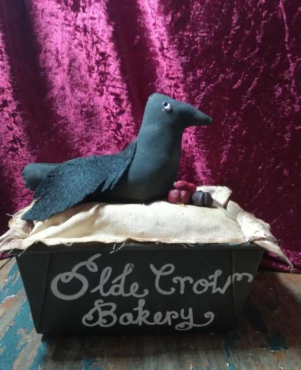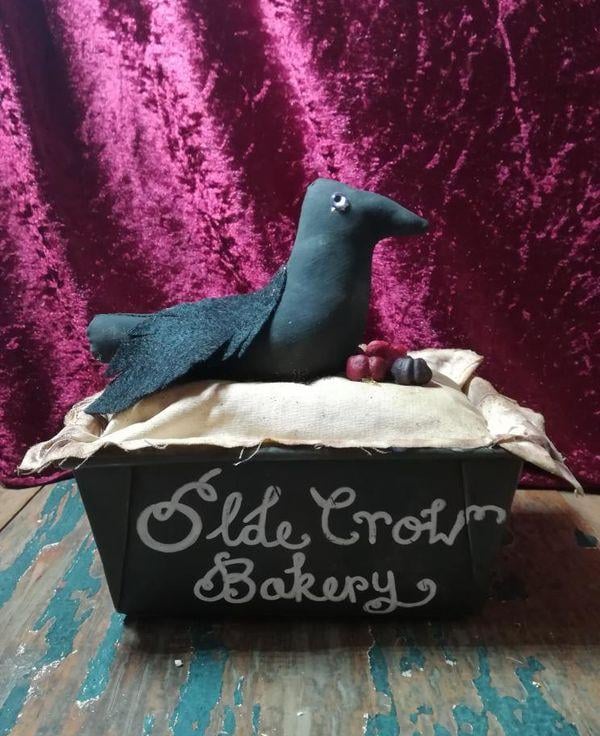 Hand drawn 'Olde Crow Bakery' detail on tin,