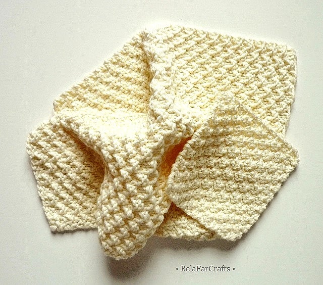 The pampering set is made of fine yarn in subtle cream colour and hand knitted with fine needles. This organic cotton is grown under highly controlled conditions in India and certified by Skal (the Swiss regulatory body for natural textiles).