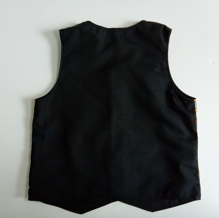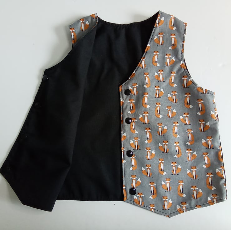 A reversible waistcoat for boys with a fox design.