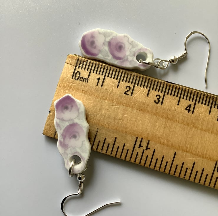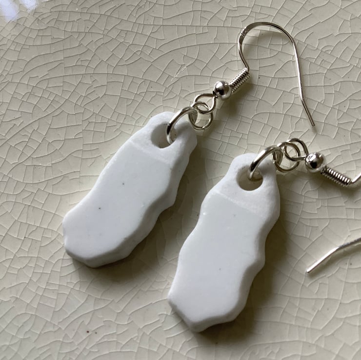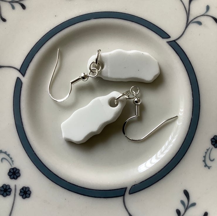 I gently clipped the plates and allowed shards to form and fall onto a cork board. I’ve sanded and sealed the edges, leaving slight tool marks and working with the shapes as they were originally formed. The subtle colours and slight fading really adds a different feel to these earrings. Similar in shape, design and size but completely individual. Full of history.