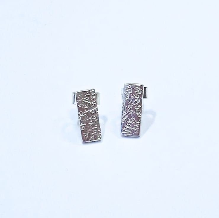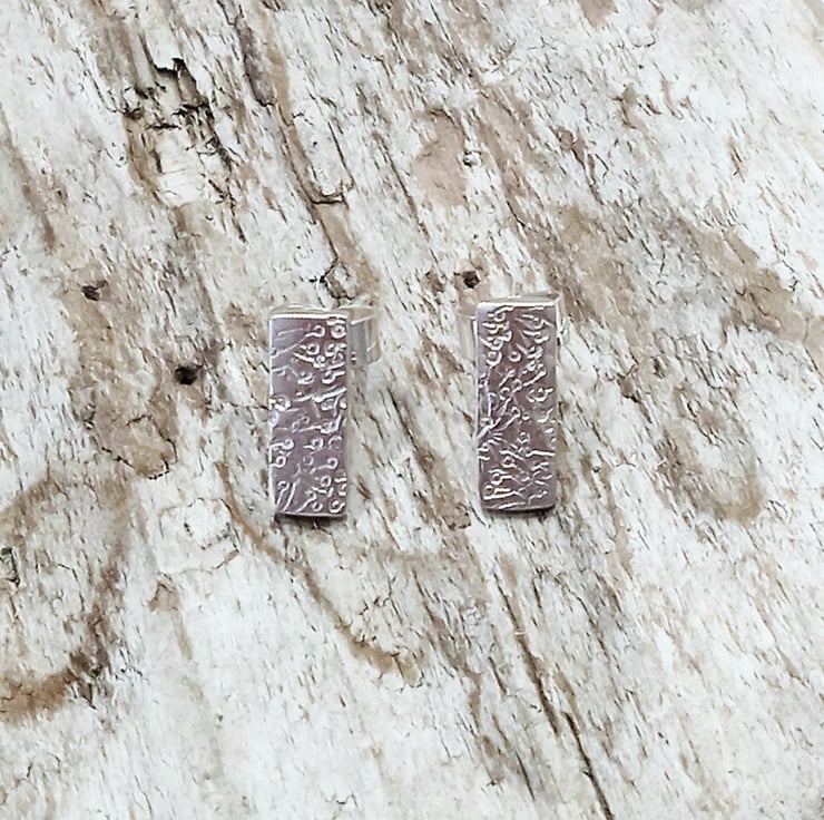 I have created these beautiful earrings by hand texturing sterling silver with an attractive abstract organic pattern