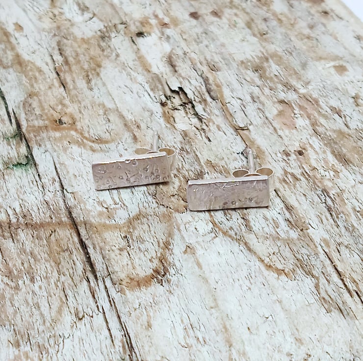 The earrings measure approximately 10 x 4 x 1 mm and I have soldered on sterling silver earring posts with scroll backs.