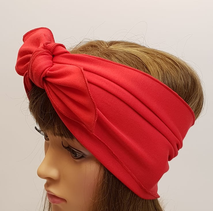 Self tie cotton jersey hair scarf red hair covering , hair tie, extra wide hair bandanna.