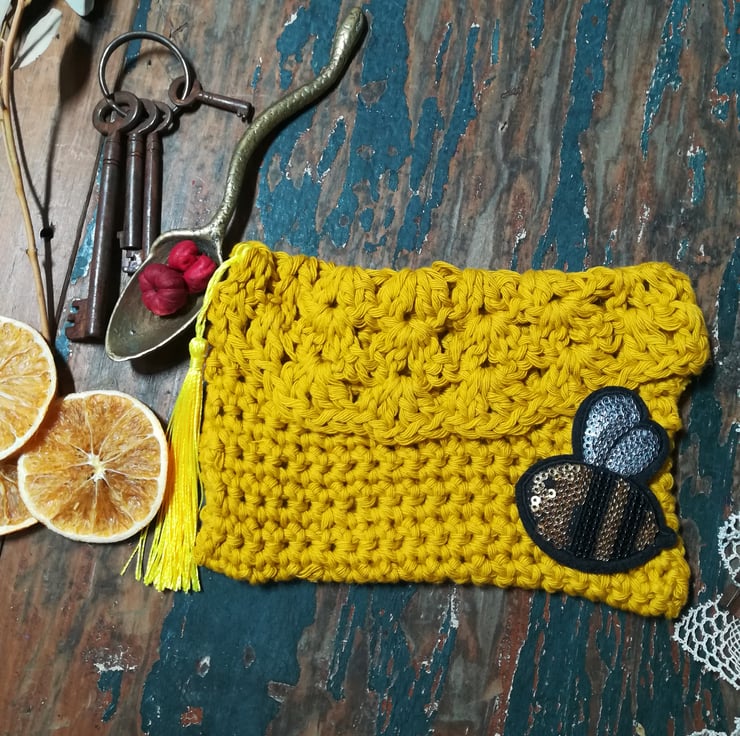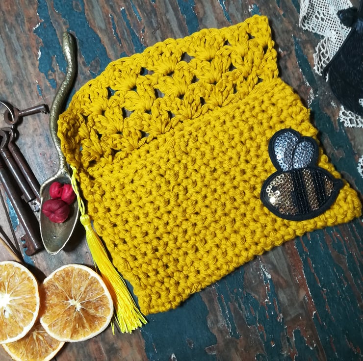 This pouch is made for keeping your tarot card deck. It is made from a lovely cotton yarn and has a decorative stitch top flap.