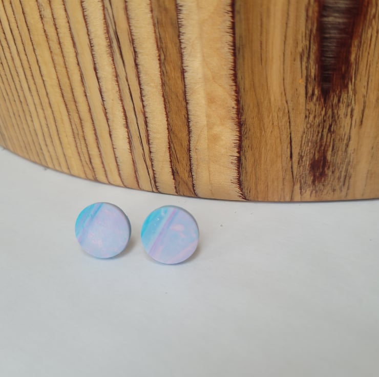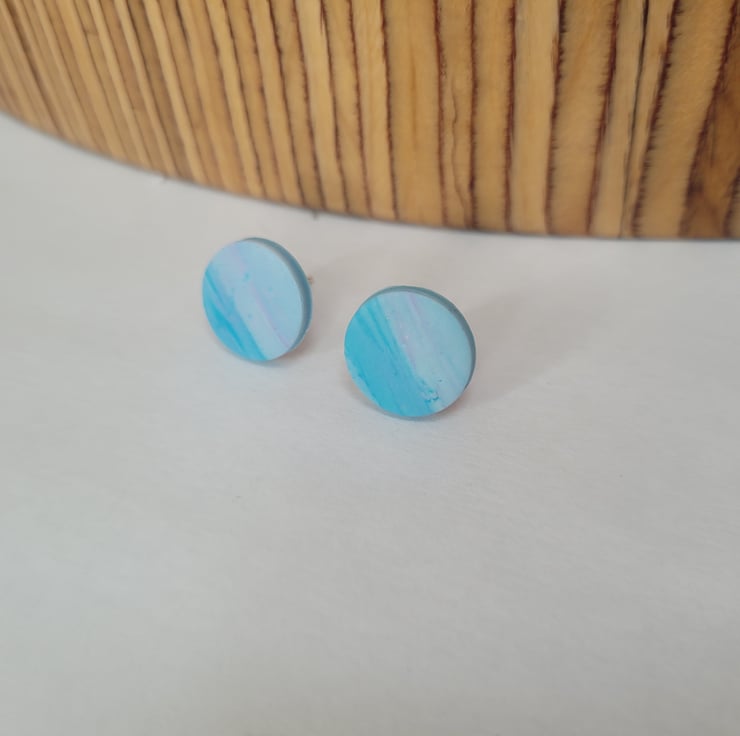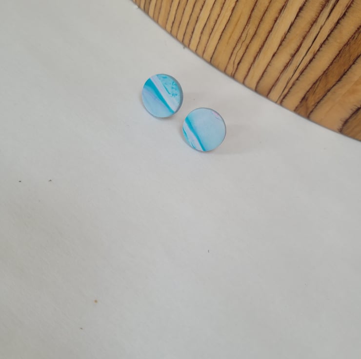Blue Marble Circles - Polymer Clay Stud Earrings